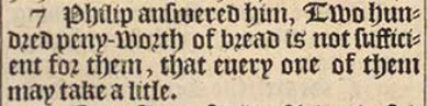 7 Philip answered him, Two hundred peny-worth of bread is not sufficient for them, that euery one of them may take a litle.
