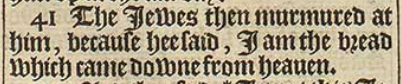 41 The Iewes then murmured at him, because hee said, I am the bread which came downe from heauen.