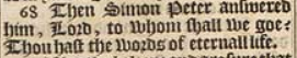 68 Then Simon Peter answered him, Lord, to whom shall we goe? Thou hast the words of eternall life.