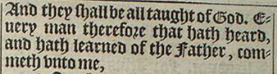 45 *It is written in the Prophets, And they shall be all taught of God. Euery man therefore that hath heard, and hath learned of the Father, commeth vnto me, [*Esai 54.13. iere. 31.34.]