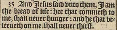 35 And Iesus said vnto them, I am the bread of life: hee that commeth to me, shall neuer hunger: and he that beleeueth on me, shall neuer thirst.