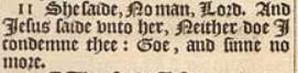 11 She saide, No man, Lord. And Iesus saide vnto her, Neither doe I condemne thee: Goe, and sinne no more.