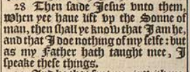 28 Then saide Iesus vnto them, When yee haue lift vp the Sonne of man, then shall ye know that I am he, and that I doe nothing of my selfe: but as my Father hath taught mee, I speake these things.