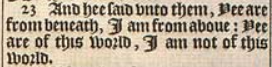23 And hee said vnto them, Yee are from beneath, I am from aboue: Yee are of this world, I am not of this world.