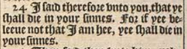 24 I said therefore vnto you, that ye shall die in your sinnes. For if yee beleeue not that I am hee, yee shall die in your sinnes.