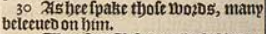 30 As hee spake those words, many beleeued on him.