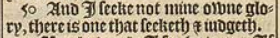 50 And I seeke not mine owne glory, there is one that seeketh & iudgeth.