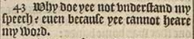 43 Why doe yee not vnderstand my speech? euen because yee cannot heare my word.