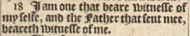 18 I am one that beare witnesse of my selfe, and the Father that sent mee, beareth witnesse of me.