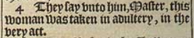 4 They say vnto him, Master, this woman was taken in adultery, in the very act.