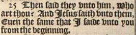 25 Then said they vnto him, Who art thou? And Iesus saith vnto them, Euen the same that I saide vnto you from the beginning.