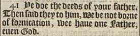 41 Ye doe the deeds of your father. Then said they to him, We be not borne of fornication, wee haue one Father, euen God.