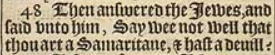 48 Then answered the Iewes, and said vnto him, Say wee not well that thou art a Samaritane, & hast a deuill?