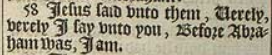 58 Iesus said vnto them, Uerely, verely I say vnto you, Before Abraham was, I am.