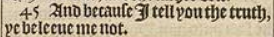 45 And because I tell you the truth, ye beleeue me not.