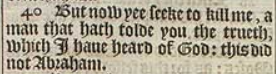 40 But now yee seeke to kill me, a man that hath tolde you the trueth, which I haue heard of God: this did not Abraham.