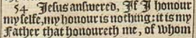 54 Iesus answered, If I honour myselfe, my honour is nothing: it is my Father that honoureth me, of whom ye say, that he is your God: