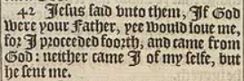 42 Iesus said vnto them, If God were your Father, yee would loue me, for I proceeded foorth, and came from God: neither came I of my selfe, but he sent me.