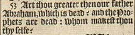 53 Art thou greater then our father Abraham, which is dead? and the Prophets are dead: whom makest thou thy selfe?