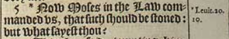 5 *Now Moses in the Law commanded vs, that such should be stoned: but what sayest thou?[*Leuit.20.10.]