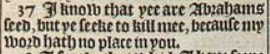 37 I know that yee are Abrahams seed, but ye seeke to kill mee, because my word hath no place in you.