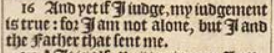 16 And yet if I iudge, my iudgement is true: for I am not alone, but I and the Father that sent me.