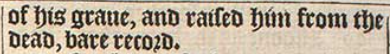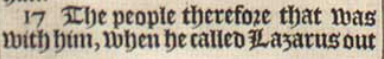 17 The people therefore that was with him, when he called Lazarus out of his graue, and raised him from the dead, bare record.