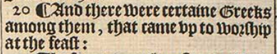 20 ¶ And there were certaine Greeks among them, that came vp to worship at the feast: