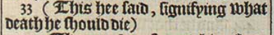 33 (Dies sagte er, andeutend welchen Tod er sterben sollte)