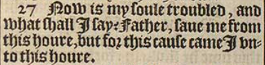 27 Now is my soule troubled, and what shall I say? Father, saue me from this houre, but for this cause came I vnto this houre.