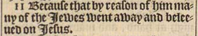 11 Because that by reason of him many of the Iewes went away and beleeued on Iesus.