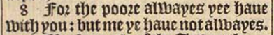 8 For the poore alwayes yee haue with you: but me ye haue not alwayes.