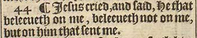 44 ¶ Iesus cried, and said, He that beleeueth on me, beleeueth not on me, but on him that sent me.