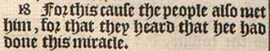 18 For this cause the people also met him, for that they heard that hee had done this miracle.