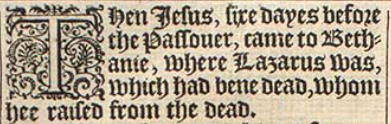 1 Then Iesus, sixe dayes before the Passouer, came to Bethanie, where Lazarus was, which had bene dead, whom hee raised from the dead.