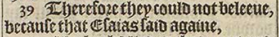 39 Therefore they could not beleeue, because that Esaias said againe,