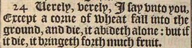 24 Uerely, verely, I say vnto you, Except a corne of wheat fall into the ground, and die, it abideth alone: but if it die, it bringeth forth much fruit.