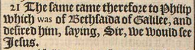 21 The same came therefore to Philip which was of Bethsaida of Galilee, and desired him, saying, Sir, we would see Iesus.