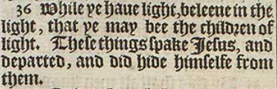 36 While ye haue light, beleeue in the light, that ye may bee the children of light. These things spake Iesus, and departed, and did hide himselfe from them.