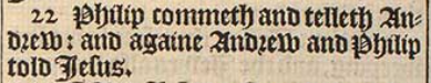 22 Philip commeth and telleth Andrew: and againe Andrew and Philip told Iesus.