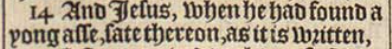 14 And Iesus, when he had found a yong asse, sate thereon, as it is written,