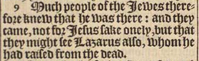 9 Much people of the Iewes therefore knew that he was there: and they came, not for Iesus sake onely, but that they might see Lazarus also, whom he had raised from the dead.