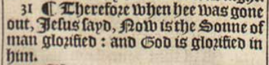 31 ¶ Therefore when hee was gone out, Iesus sayd, Now is the Sonne of man glorified: and God is glorified in him.