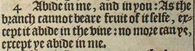 4 Abide in me, and in you: As the branch cannot beare fruit of itselfe, except it abide in the vine: no more can ye, except ye abide in me.