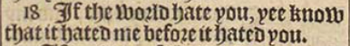 18 If the world hate you, yee know that it hated me before it hated you.