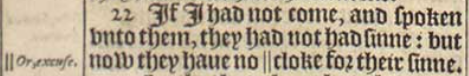 22 If I had not come, and spoken vnto them, they had not had sinne: but now they haue no || cloke for their sinne.[||Or, excuse.]