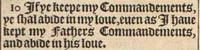 10 If ye keepe my Commandements, ye shal abide in my loue, euen as I haue kept my Fathers Commandements, and abide in his loue.