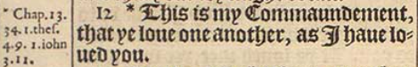 12 *This is my Commaundement, that ye loue one another, as I haue loued you.[*Chap.13.34. 1.thes. 4.9. 1.iohn 3.11.]
