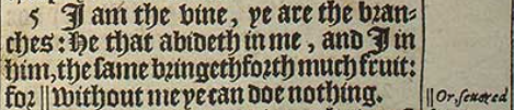 5 I am the vine, ye are the branches: He that abideth in me, and I in him, the same bringeth forth much fruit: for || without me ye can doe nothing.[||Or, seuered from me.]