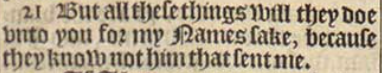 21 But all these things will they doe vnto you for my Names sake, because they know not him that sent me.